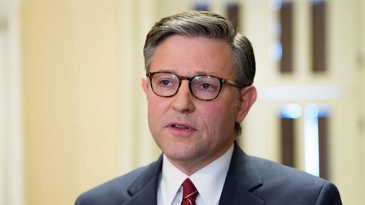 Speaker Mike Johnson (R-La.) speaks to reporters at the U.S. Capitol on Feb. 3, 2026, after the House voted on a spending package to reopen most of the government through the end of September.