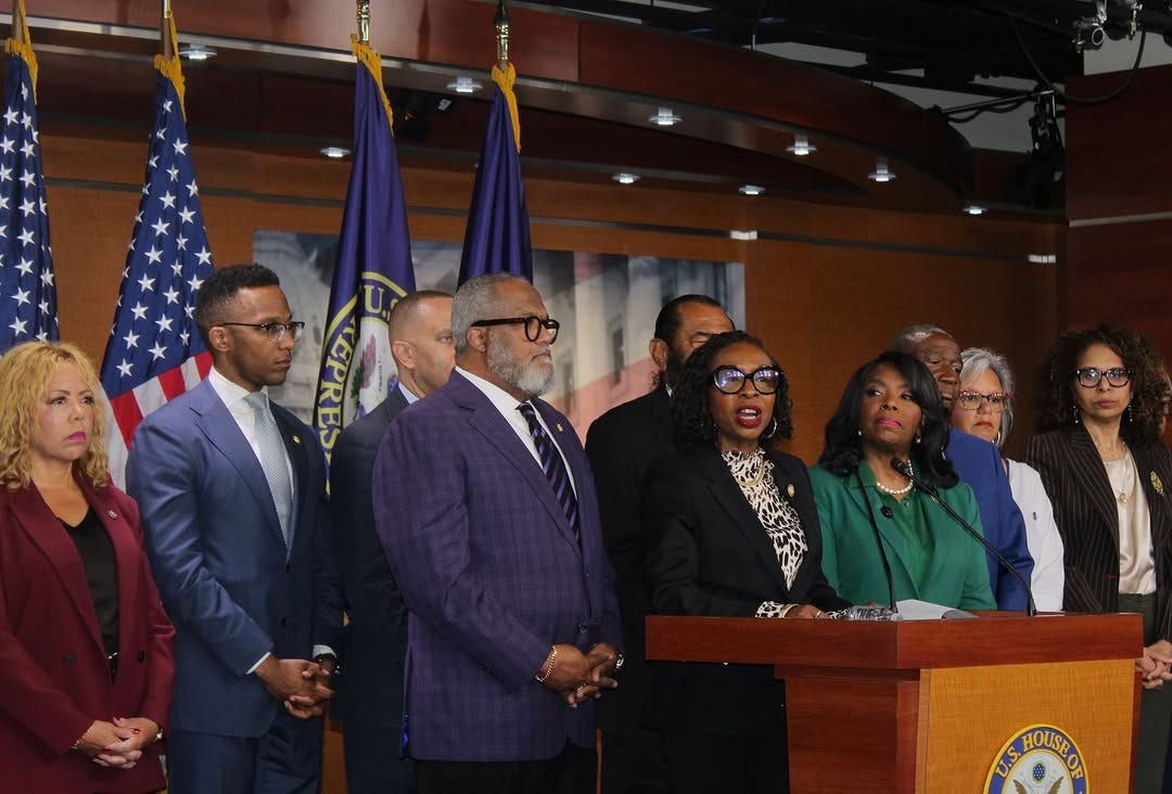 Congressional Black Caucus Yvette Clarke (D-N.Y.) speaks as CBC members look on during a press conference at the U.S. Capitol on April 29, 2026. Photo courtesy of @repyvetteclarke/Instagram