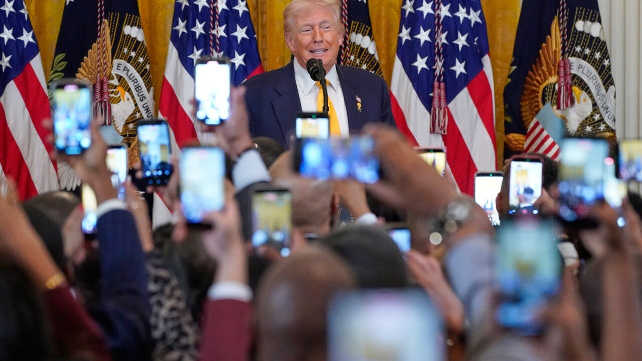 Congress Nerd SunsetTrump defends record at Black History eventAt a White House Black History Month reception, Trump touted HBCUs and tax cuts as proof of progress, while Black lawmakers cited DEI rollbacks and safety-net cuts as evidence of harm.Michael JonesFeb 18, 2026∙ PaidSharePresident Donald Trump speaks during a Black History Month event in the East Room of the White House on Feb. 18, 2026. (Photo by Nathan Howard/AP)Continue reading this post for free, courtesy of Michael Jones.Claim my free postOr purchase a paid subscription.PreviousNext